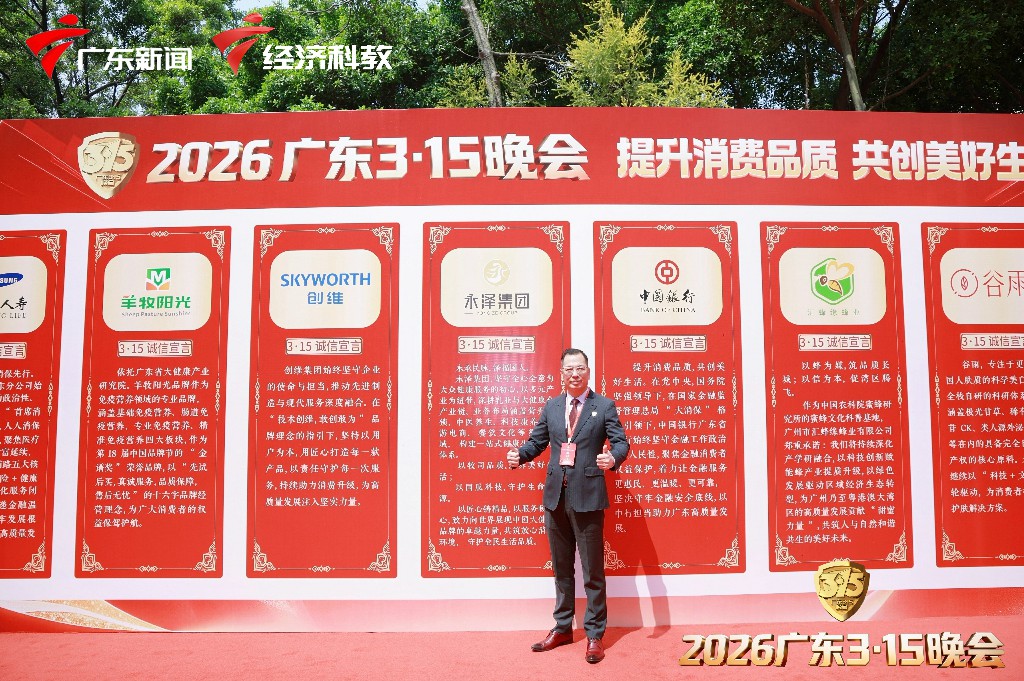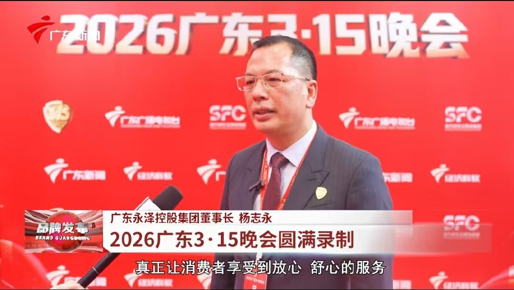 2026广东3·15晚会在广东电视台演播厅隆重举行。本届晚会以“提升消费品质,共创美好生活”为主题,聚焦营养健康产业高质量发展。永泽控股集团董事长杨志永先生代表集团出席盛会,参与节目对话并发布《永泽控股集团诚信经营自律宣言》,彰显企业守护民生健康、引领行业规范的责任与担当。